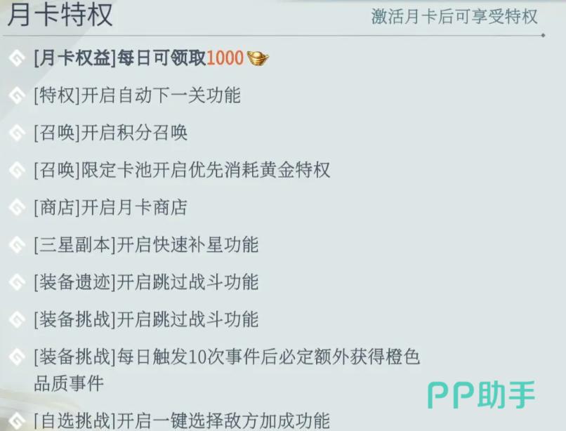 月卡解锁后同步开放“积分召唤”系统,赋予玩家更高的抽卡自主权;在限定卡池中,黄金特权将优先消耗,避免常规资源误用,提升稀有角色获取精度。同时,月卡专属商店引入装备挑战副本中的橙色事件保底机制,使高品质装备材料产出更具确定性,有效缩短主力阵容成型周期。
