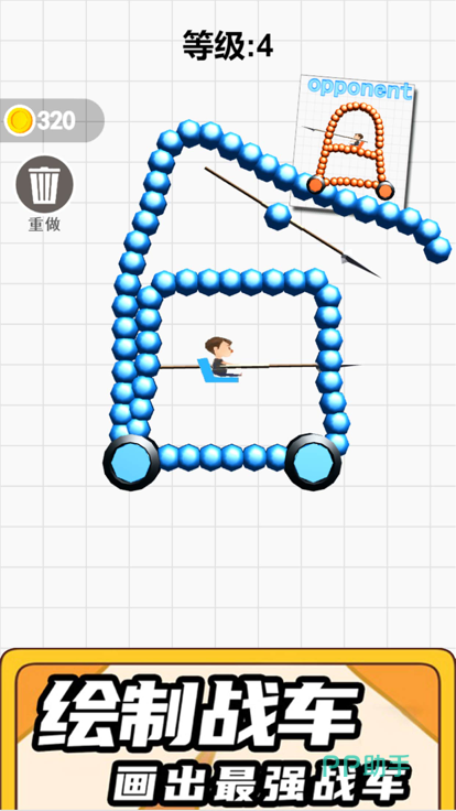 《画线战车》这是一款令人感到不可思议的车辆对战游戏,玩家们可以在这里任心所欲的去进行绘画设计,组装出一辆战斗力爆棚的战车,每一个车辆的部位都需要大家合理性的进行绘制,游戏里拥有着匠心独具的生成系统,并为大家打造了激情四射的对战场地,我们还可以肆意的去更改战车的战斗形态,同时为战车去描绘更为显眼夺目的外观颜色。