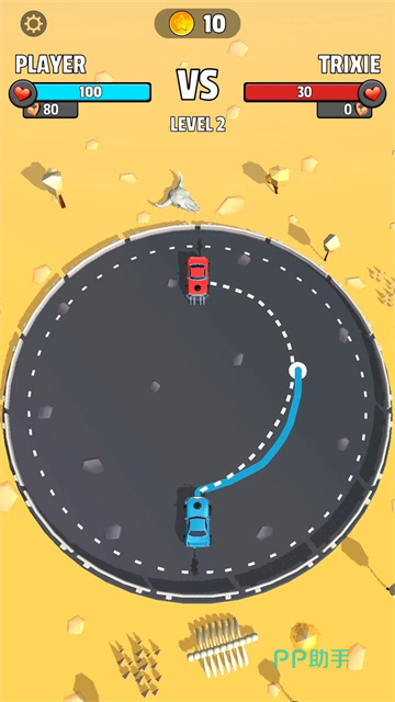《画线撞车》我们需要通过运用画笔来协调指挥车辆的行进路径,独具心裁的把绘画和赛车进行了结合,每个关卡中都拥有着精彩绝妙的挑战,而且所呈现的地图空间以及碰撞要求,都有着令人眼界大开的设定,我们还需用画笔去控制车辆的时速,根据对手的位置,独具只眼地去描绘出一条更为合理的撞击路线。