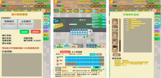 在这款游戏当中,我们能够真正体验当老板的乐趣,满足现实生活当中无法实现的愿望。作为老板的你要雇佣员工还要合理规划工厂的具体生存模式。在并不是特别优越的市场环境下,得以生存获得更多的财富。可能会出现很多极端挑战,比如资金无法周转穷困潦倒,此时一定要寻求银行的帮忙,否则会导致所有努力前功尽弃。