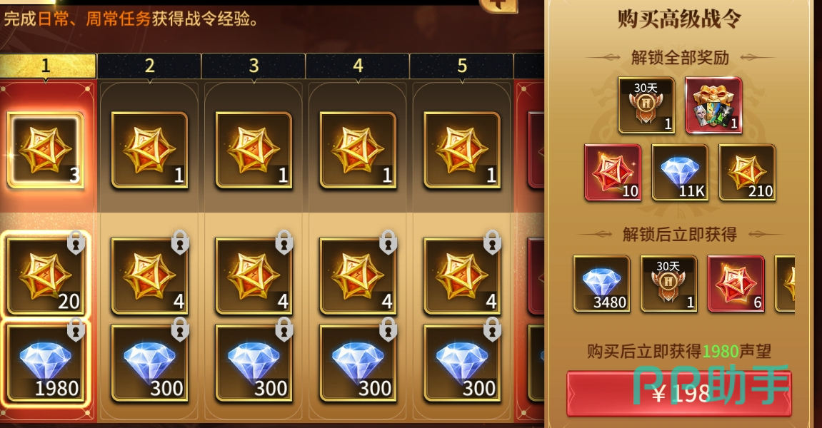 优先预留980【钻石】用于解锁【悬赏高级特权】;余下钻石集中采购商店限时折扣的【高级召唤骰子】;若钻石储备充足,可适量储备【神魔召唤骰子】,但不建议直接用于英雄抽取。