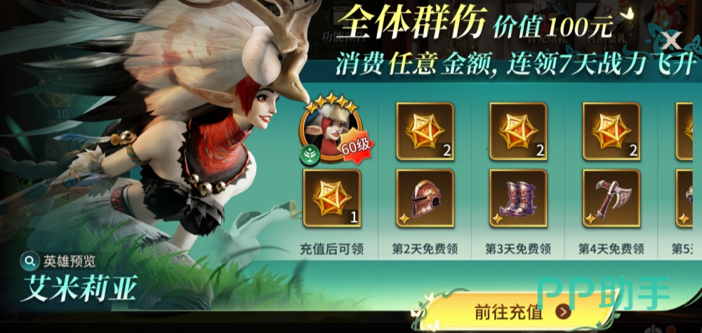 超值首充无金额门槛,任意充值即可激活,立即获得核心开荒英雄【艾米莉亚】、13枚【高级召唤骰子】及配套装备,综合性价比突出。推荐通过【每日特惠】中售价6元的礼包完成激活,优先选择含【幸运宝箱】的版本。