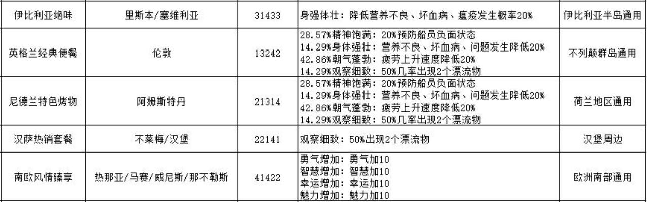 大航海时代传说中,各国酒吧套餐是恢复角色行动力的核心机制,同时也是获取增益效果的重要方法,今天小编为大家梳理一下大航海时代传说各国套餐的效果,其实不同国家的酒吧提供特色套餐,需通过好感度、点餐顺序或特殊任务解锁。而了解套餐能显著提升探索与战斗效率。