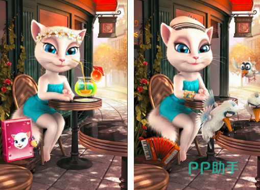 这款以白色的猫咪安吉拉进行养成的趣味性小游戏,大家可看到里面的小猫咪,长得非常独特,给人的感觉很优雅。尤其是在桌子上喝着吃着东西的时候,仿佛优雅的贵妇一样,同样也是将小猫咪进行了拟人化,既能够给它穿漂亮的衣服,打扮的很时尚。同时也能在游戏所设置的场景中,进行各种各样的操作,玩法属于非常有趣又简单的。