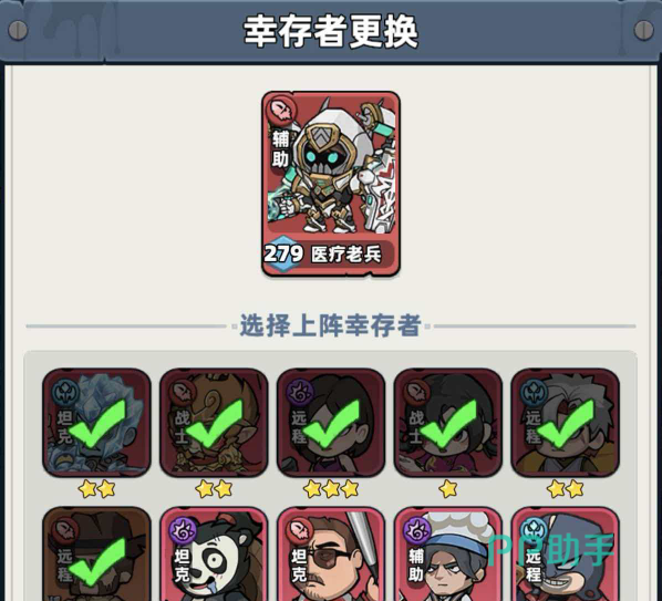 角色替换操作极为直观:进入主界面后点击【幸存者】,再触达右下角【布阵】按钮,即可查看当前上阵阵容。任意点击某位角色头像,系统将自动跳转至换人页面。从底部幸存者列表中选取目标角色,确认后即完成无损替换。特别注意:务必勾选【同步更换技能书】选项——此举可完整继承原角色的主动技能与全部被动技能,避免重复培养与技能重配,大幅节省资源投入。