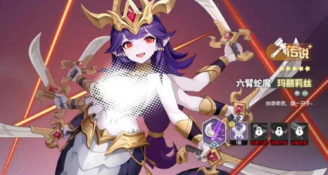 六臂蛇魔玛丽——前期开荒战略级辅助输出者。作为传说品质限定角色,其核心机制在于“狂野状态”:触发后不仅大幅降低大招能量消耗,更可为全体队友提供稳定减伤效果。该特性在角色等级、装备尚未成型的初期尤为珍贵,显著缓解生存压力并提升副本通关效率。实测数据显示,在15级主线关卡中,携带玛丽的队伍平均通关耗时缩短约37%,失败率下降超50%。