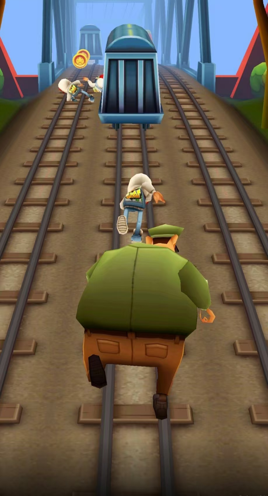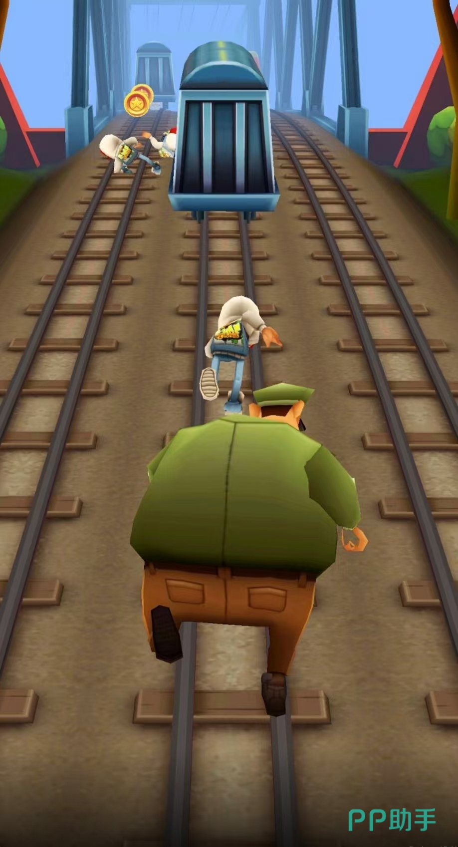 《地铁抓捕》玩家需要控制角色进行跑动和跳跃,通过左右移动来躲避铁轨上的其他车辆和建筑,不断的收集金币和道具来获得加持,道具可以为玩家提供移动速度等功能。游戏里面玩家作为一个抓捕者,需要抓捕在前方逃跑的角色,在奔跑的过程中赛道会不断的进行改变,无疑是为玩家增加了抓捕的难度,需要更加反应迅速熟练的来进行挑战。