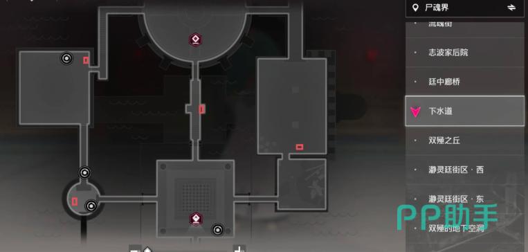 下水道区域分为上下两段。上半段以砖砌拱顶为主,手机藏于检修口盖板下方、排水沟滤网背后;下半段转为混凝土管道,手机多附着于管壁铆钉阵列中心或岔路口指示牌背面。
