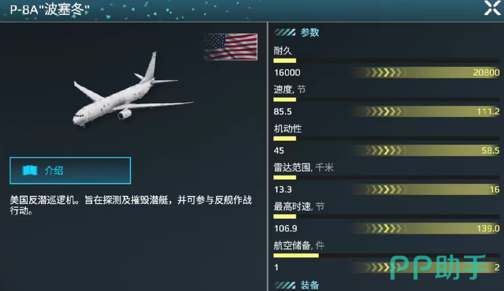 P8A在游戏中又被称之为波塞冬,它作为一款性价比特别高的反潜巡逻机,其实就是反潜设备。它能够有效地探测,并且还可以攻击敌人,在反潜战斗的时候,它会起着关键性的作用。因为它在游戏里面被称之为反潜作战的核心,可以有效的精准定位,也能够进行持续性的压制,它可以限制敌方潜艇的行动范围。