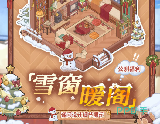该套装将在游戏公测阶段直接开放领取,无需充值或额外任务解锁。整套“雪窗暖阁”共含29件定制家具,涵盖氛围边框、动态发光屋顶、原木质感地板及可交互雪景窗框等细节组件。设计语言深度融合冬季意象:暖色调木质结构搭配窗外持续飘落的雪花粒子特效,营造出静谧、柔软、有呼吸感的室内空间体验。所有家具均支持360度无限制旋转与多层空间摆放(包括床底、桌下、墙面挂置等),真正实现“所想即所得”的装修自由。