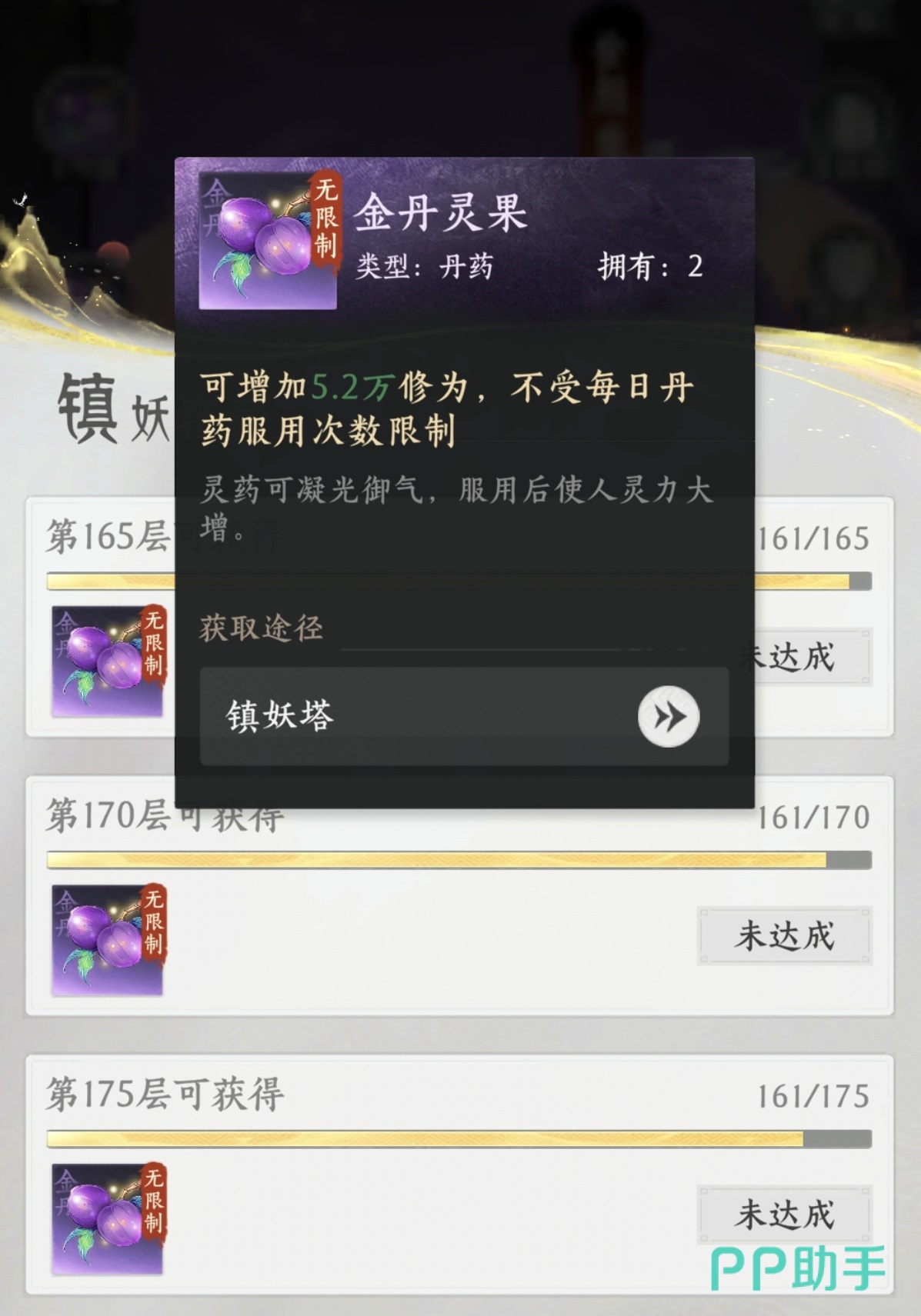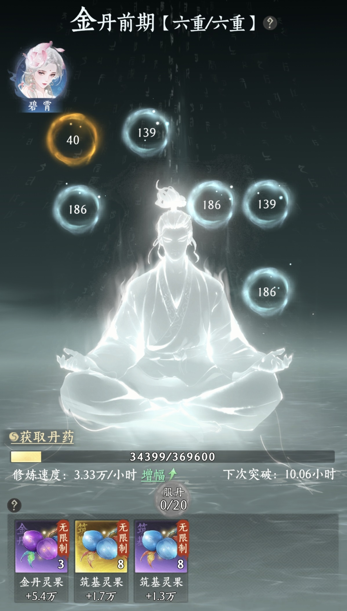 获取途径包括镇妖塔副本掉落与炼丹系统自主合成。在操作层面,建议优先消耗高品质丹药(如九转金丹、玄阳玉液),因其单次提供的修为量远高于普通丹药,但占用次数相同;低品质丹药(如凝气散、培元丸)宜留作次数即将清零时的补充使用。同时须严格匹配当前境界:金丹期修士服用筑基期丹药,不仅修为转化率大幅衰减,更会无谓消耗宝贵次数。