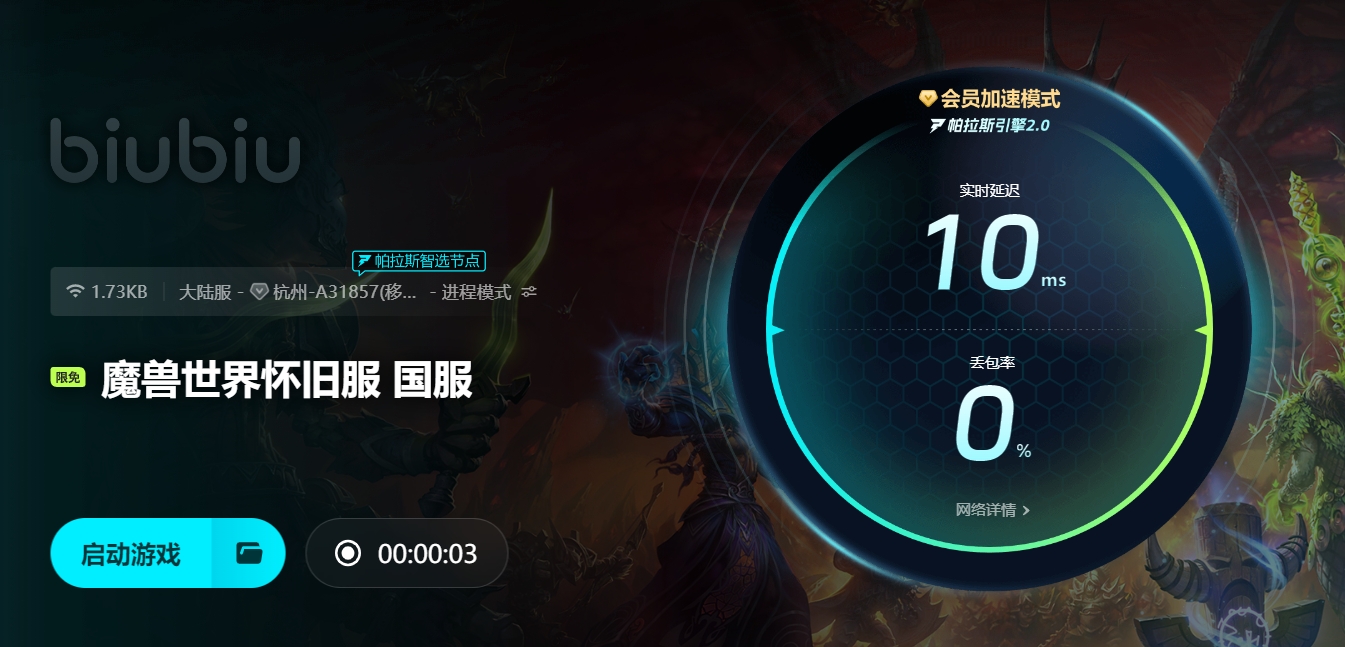 玩过魔兽游戏的玩家都知道这个游戏的玩法就是努力升级达到满级后,组队刷本刷装备,致力将角色职业的战斗力提升到最高数值,不过怀旧服的玩法有了一点小小的变化,在整个游戏过程中角色只有一条生命值,一旦操作失误或者是打怪升级时失败了就意味着游戏失败,因此在游戏过程中,特别是在战斗状态下的话,一定要确保自己的网络足够顺便,否则一个技能操作失误可能就结束了游戏,想要保持游戏的稳定,小编给玩家们介绍一个好用的加速器——biubiu加速器。