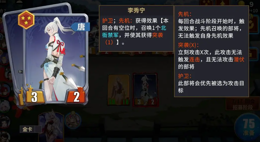第二位推荐统帅为李秀宁。作为唐阵营关键前排统帅,她兼具嘲讽、反伤与兵力召唤三重功能。其技能可在限制敌方集火的同时,触发反伤反馈并为队友提供即时治疗增益,大幅降低团队承伤压力。在实战部署中,李秀宁常置于前排,配合唐系武将达成“嘲讽—反伤—回血”循环,支撑持久战能力。前期数值成长扎实,天梯赛等高强度对抗中表现尤为稳健,是构建高容错唐系阵容的首选统帅。