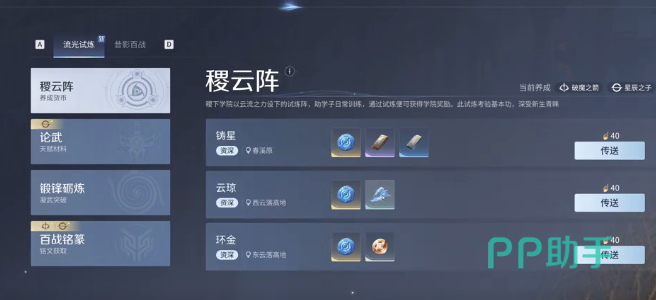 至于【稷云阵】,虽产出全英雄通用货币,但因其资源转化效率低于前两者,建议安排在每日体力富余时段进行补刀式挑战,切勿优先消耗主力体力。整体开荒节奏应遵循“主养英雄材料优先→突破资源次之→通用货币兜底”的三级分配逻辑。同步推进历练副本,确保英雄突破所需材料持续供给,从而平稳跨越前期成长断层。
