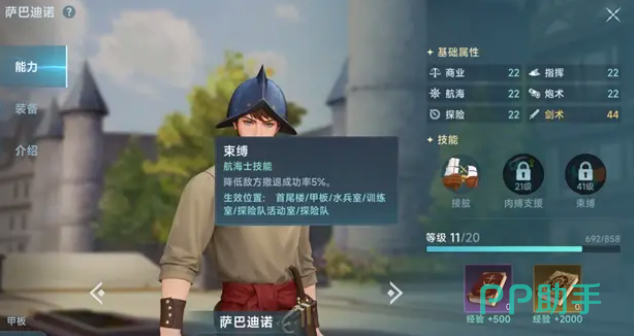 另外还有主计长贾斯汀,因为这个角色比较擅长讲价和贸易,可以让玩家用较少的资金购买较多的物品,同时也能把自己手中的物品出售一个较好的价格,另外还有冲锋队长萨巴迪诺,这个角色非常适合战斗,以及其他的三位航海士分别可以作为辅助型角色、副舰长以及冒险家,能帮助玩家更好的在海上航行。
