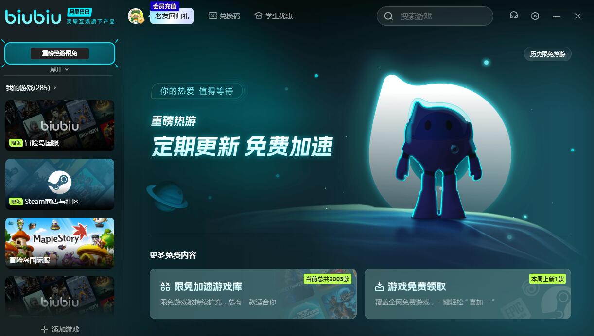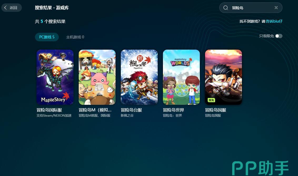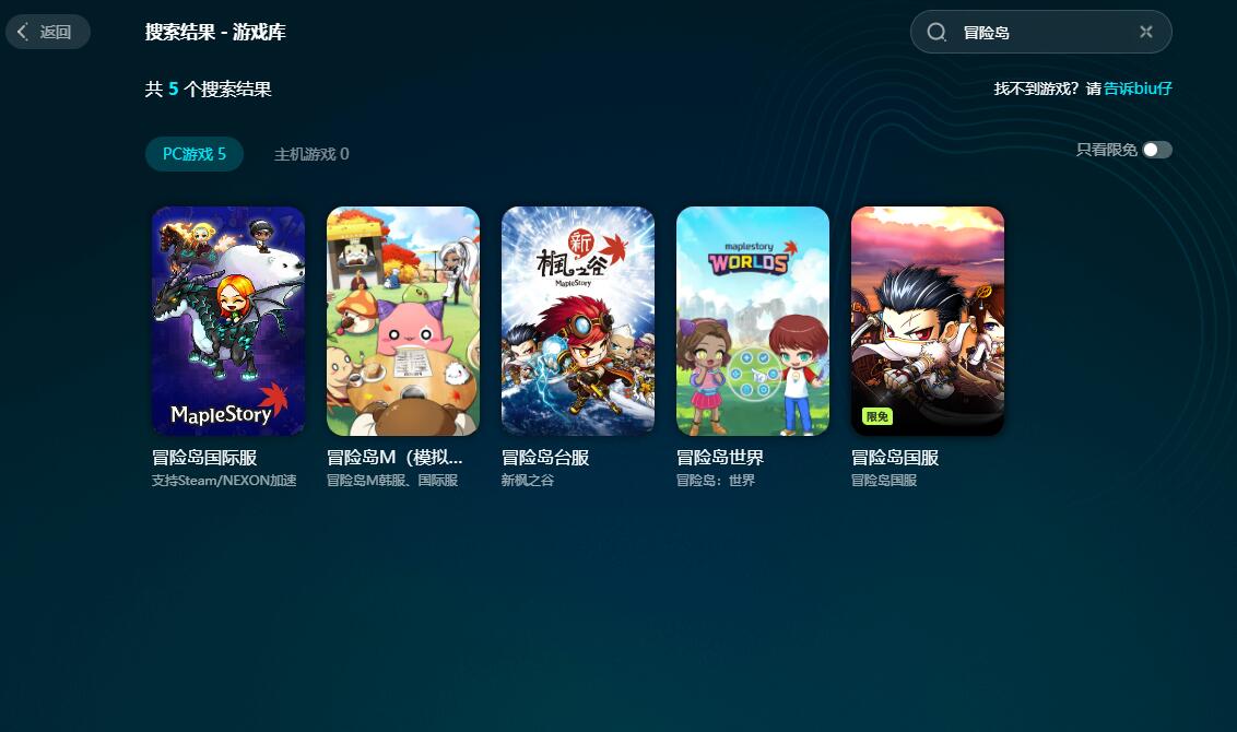 成为会员之后,无论游玩哪一个版本的冒险岛,都能享受到同样的加速服务,除了冒险岛之外,平台还支持很多热门的网游,大家可以用biubiu去优化它们。此外,平台还上线了限免活动,凡是在限免范围内的游戏,不开会员也能加速,让大家有更多时间去体验biubiu这个软件。