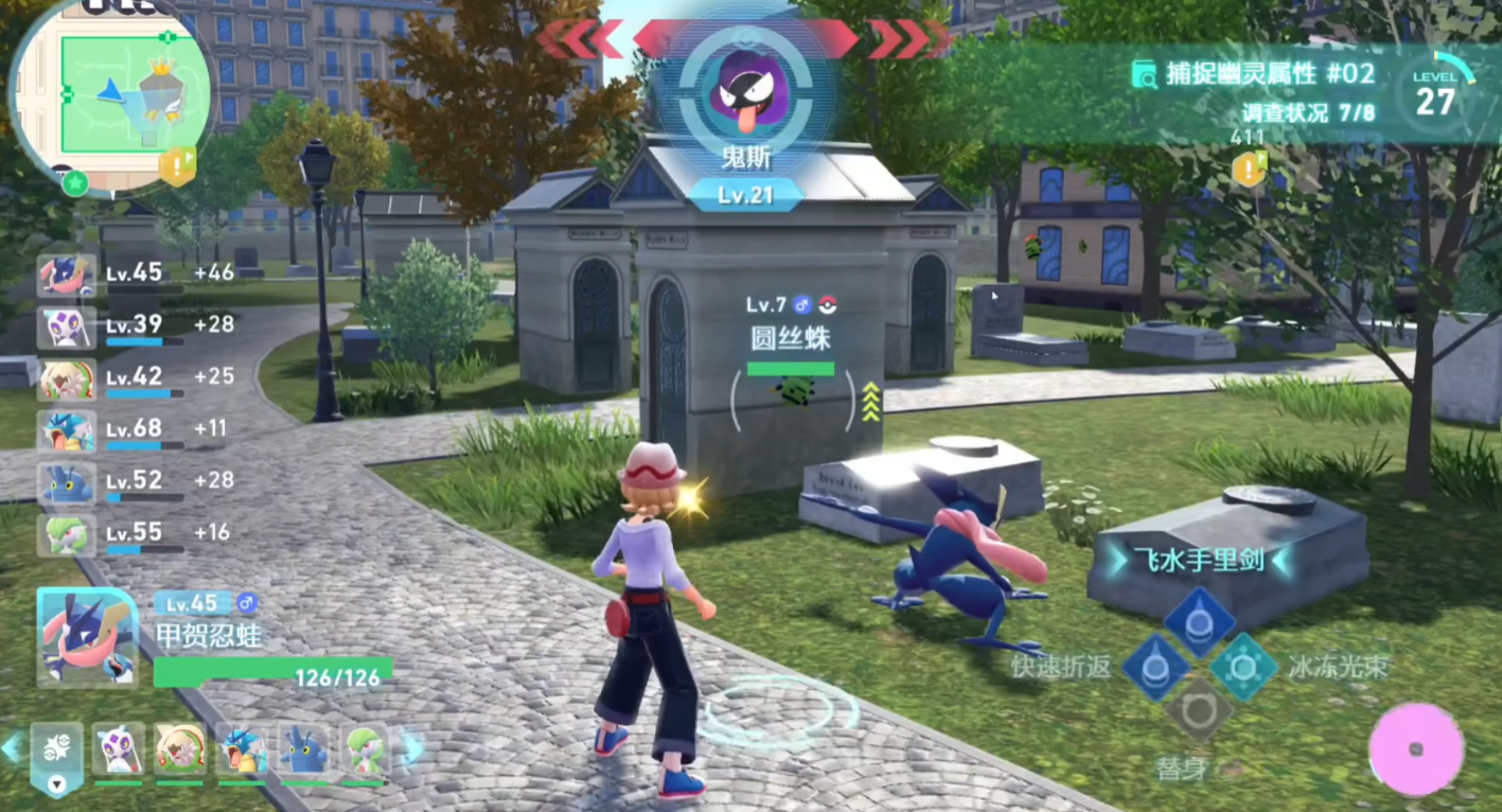 核心输出技能首选“飞水手里剑”,具备远程打击能力,命中率稳定在100%,伤害可观且冷却时间短,适合用来快速清理低耐久目标。搭配“恶之波动”可增强对幽灵系和超能力系宝可梦的压制力,提供稳定的中距离输出。此外,“冰冻光束”也是优选之一,弹道速度快,能有效克制龙系、草系和飞行系对手,覆盖多种常见属性。