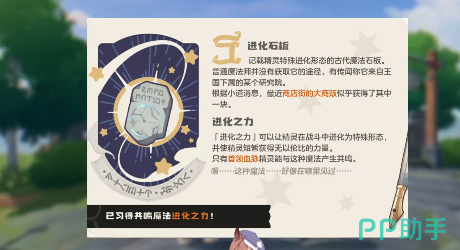 最基础且稳定的获取方式是完成“远古魔法录摘录”任务。当玩家成功完成该任务后,将获得一块关键道具——进化石板。拥有石板之后,便可学习并掌握进化之力。这一方法流程清晰、操作简单,是目前游戏中最为推荐的获取手段。此外,参与限时活动也是获得相关资源的重要补充渠道。