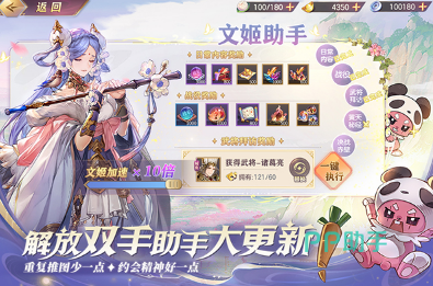 这是一款大世界SRPG 手游。游戏打破了传统SLG 游戏“战报式”的战斗模式,让战斗不再只是简单的数值比拼和一碰即分胜负。而是由主公亲自操控走位与出招,打出精彩绝伦的战术。游戏提供了100 + 武将战法供玩家自由搭配,每个武将都经过精心设计,拥有独特的战术定位。各种百变的套路和黑科技,只等主公去发掘。挑战名将副本和征讨贼寇获取资源,在探索过程中轻松发展自己的势力。