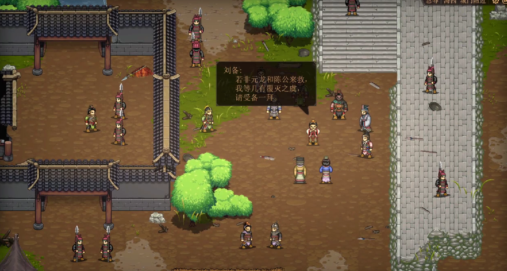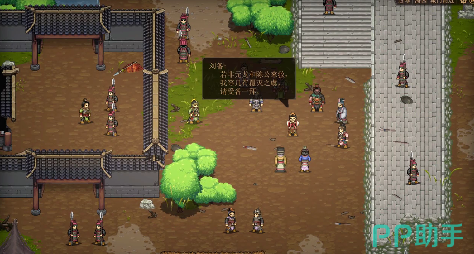 而整个任务分为三个阶段,首先,玩家可以利用张飞的咆哮技能,可以有效的清除城门的敌人。而这款游戏是以刘备的视角展开的,而此时刘备要统帅弓兵可以进行远距离的压制。
