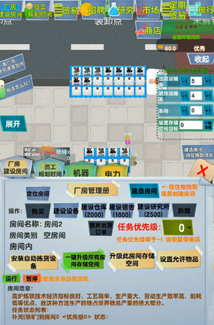 玩家可以深度感受经营者的日常点滴,在这个市场环境中,凭借智慧与谋略,逐步开拓出属于自己的财富版图。在追求项目盈利的道路上,如何平衡员工满意度,是玩家必须认真思考的课题。玩家可以招募各具特色的员工,让他们为自己创造源源不断的收益。深入探索科技的奥秘,解锁更多发展可能性。还可以与其他商业伙伴携手合作或展开激烈竞争,制定精妙战略,掌控商业的格局。