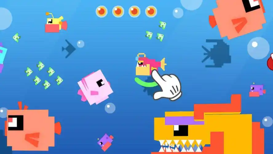 吞食鱼是一款比较标准的大鱼吃小鱼游戏,游戏采用了像素和卡通这两种不同的画风,整体看起来给人一种极为独特的感觉,可是从中又能感受到那么一丝的协调,游戏的玩法也比较好懂,玩家一开始是一条小鱼,你在海底会遇到各种身形比自己大的鱼,它们都是把你当成了食物,玩家则需要躲避它们,在逃跑躲避的过程中还要不断的吃掉比自己更小的鱼类,让自己慢慢的长大,长大之后的我们就有了和大鱼战斗的力量。