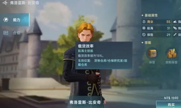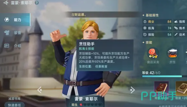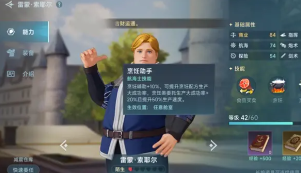 每一个航海士都有不同的能力,除了能退税之外,在游戏里有的角色也可以提升整体的载货效率,这是会对船只行进速度直接产生影响的,效率越高船航行的速度也就越快,另外还有可以传播特产的航海士,一旦委任这个角色,在卖出特产的时候,就能获得额外的收益,还有和烹饪相关的航海士,在烹饪的时候能作为助手提升烹饪成功率,也能让烹饪的整体速度变得更快一些。