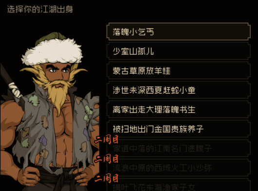 一周目玩家对于游戏的操作以及剧情基本都处于模糊状态,因此这时候需要更加关注剧情的推进以及主线的选择,本作中玩家可以通过选择不同的出生身份、发展方向以及剧情中关键的选择来解锁不同剧情,无论是出生富贵人家的公子还是落魄的乞丐,选择成为江湖侠客或是成为保家卫国的将军,都能让玩家们了解更多有趣的剧情。这里建议可以选择最常规的江湖侠客路线,不仅主线任务会比较简单,而且能够迅速熟悉游戏的操作和资源获取技巧。