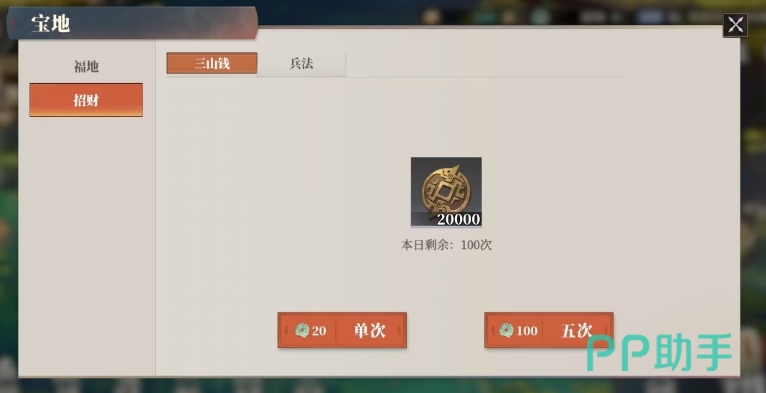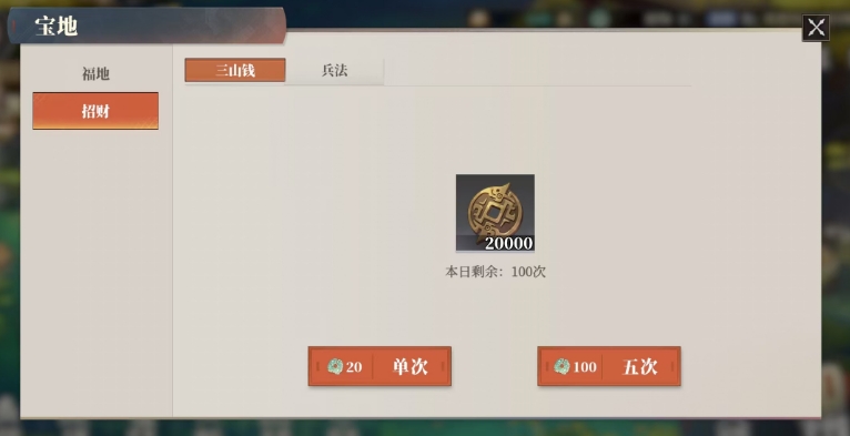 招财也是一种不错的积攒三山钱的方法,通过招财玩家们有机会获得一定数量的三山钱,而且招财的过程中还可能会伴随着一些其他的奖励,三山里的枭窝窝玩法同样也是产出三山钱的重要途径之一。