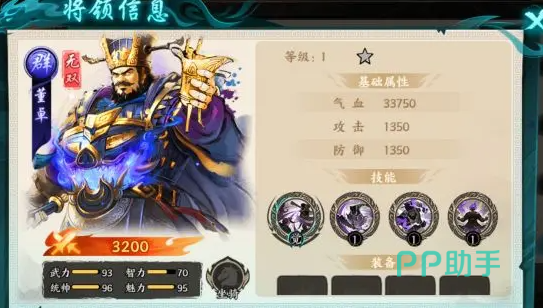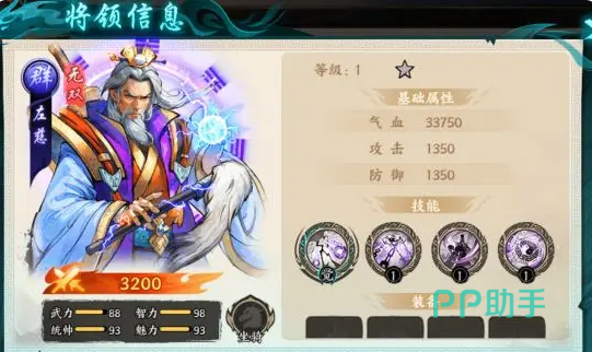 华雄作为盾兵体系的关键角色,拥有极高的防御属性和独特的麻痹联动机制,使其成为前排首选。其基础武力值可达90,并配备被动技能“关西猛将”,提供10%技能伤害减免与5%额外防御加成,整体生存能力非常强,足以应对敌方正面强攻。其怒气技能“连弩激射”不仅具备输出能力,还兼具控制效果——召唤三台弩车对横排敌人造成200%+200的技能伤害,并有20%概率附加麻痹状态。当星级提升至16星后,技能伤害将增强至260%,配合每1000点攻击属性带来的额外加成,既能承担伤害,也能打出可观输出。