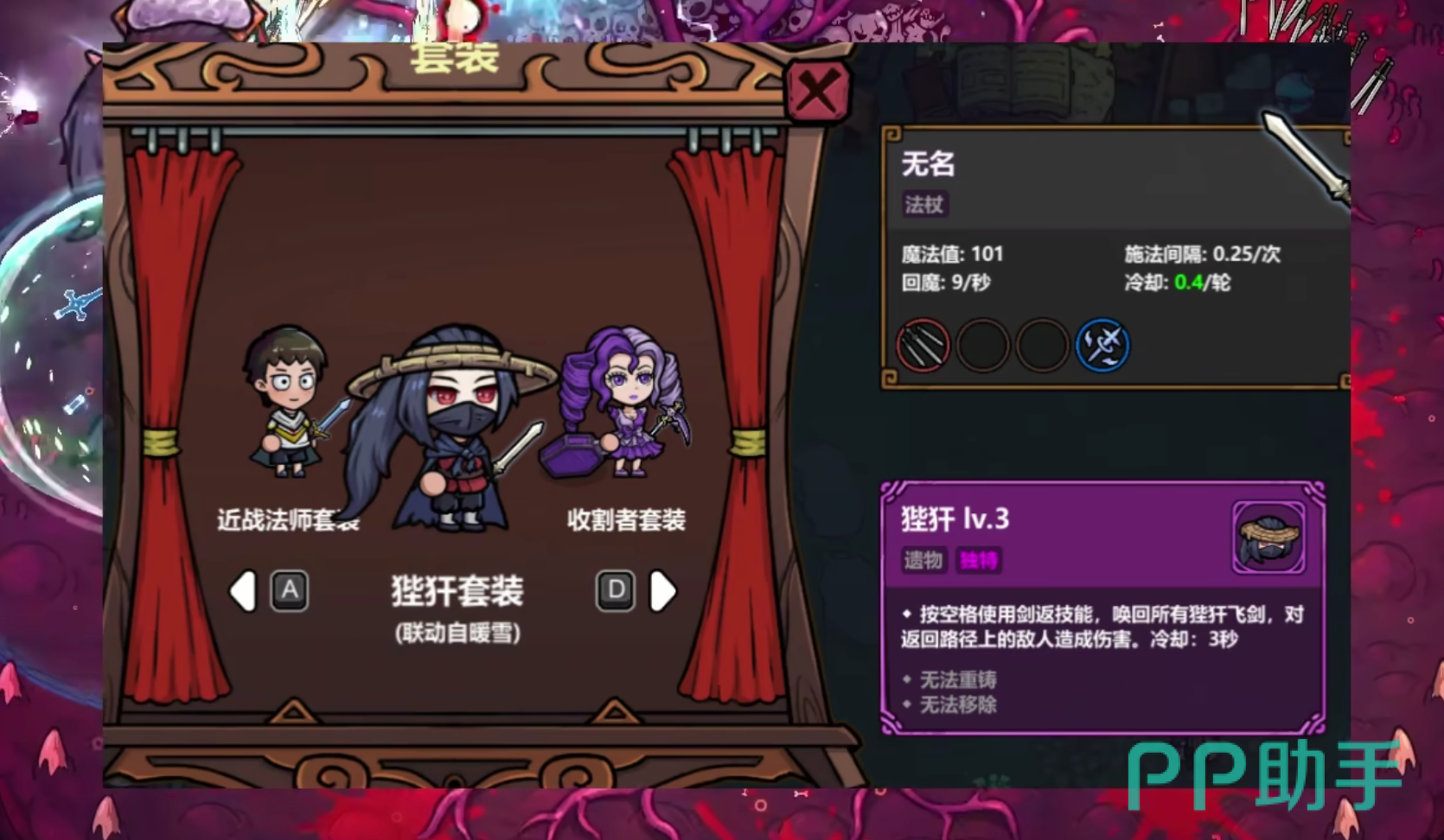 飞剑流派的核心依赖于一个关键道具——狴犴。该道具具备定时回收已发射飞剑的机制,而飞剑本身不占用法杖技能格,并能完全继承所有法术强化效果。更重要的是,每次施放任意法术时,都会额外触发一次飞剑投射,且飞剑的发射数量直接与角色当前魔力上限挂钩。因此,只要不断提升魔力值上限,整体输出能力就能持续稳定增长。
