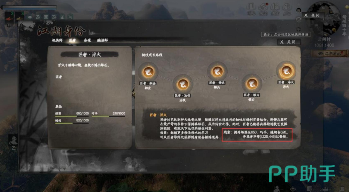 新手村附近的隐秘小岛也是重要资源点之一。前往该地需先找到无名老人并完成探索流程,随后可在岛屿石碑旁拾取“侠隐飞刀”。此暗器属性优异,但获取条件较为严苛:清功修炼值需达到900,且臂力与内力均不得低于110点。