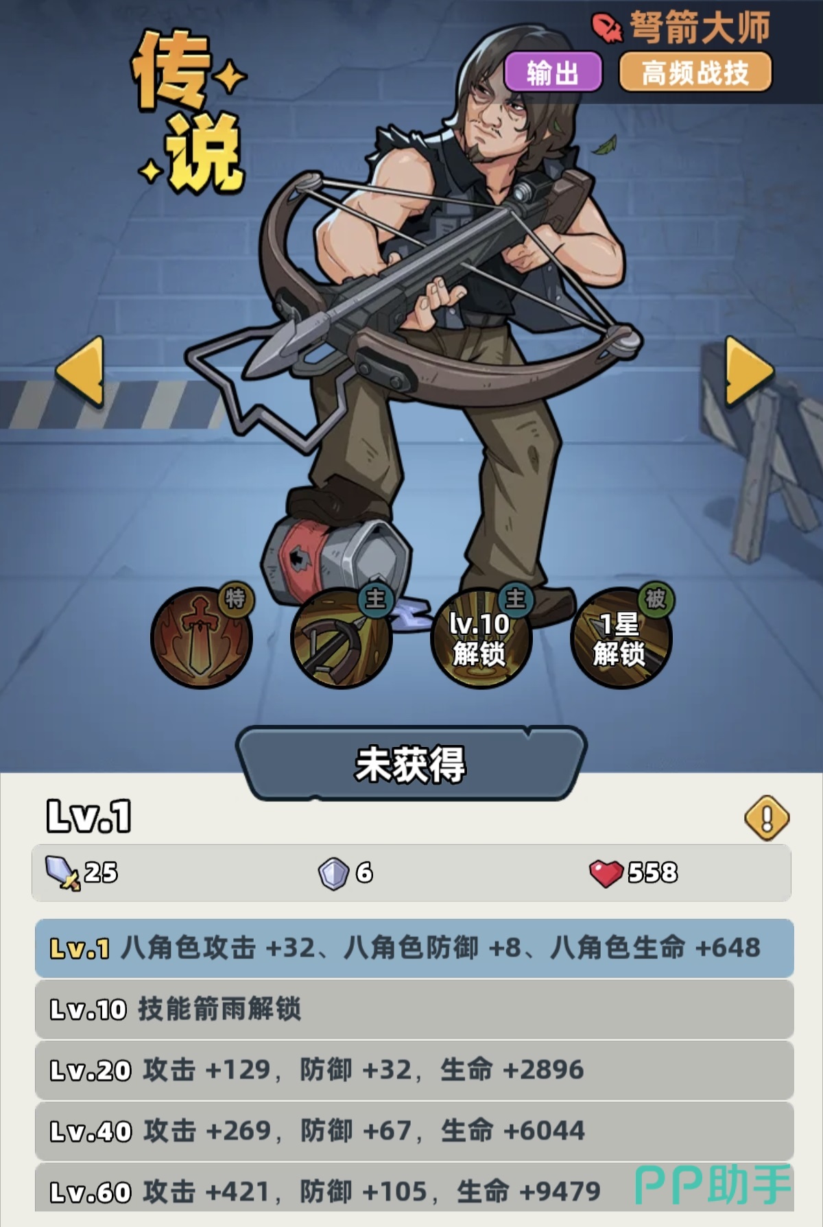 综上所述,弩箭大师并非万能型角色,但却是《生存33天》中少有的低投入、高回报爆发核心。只要合理配置辅助体系,即便不进行深度氪金,也能在中期推图、精英关卡及BOSS战中发挥关键作用。其伤害上限在当前版本已接近神话级强度,是值得长期培养的主力输出人选。