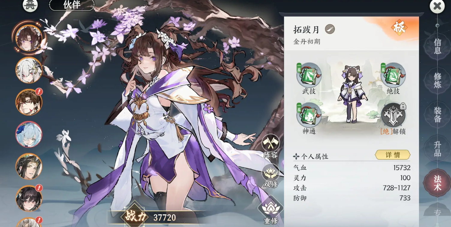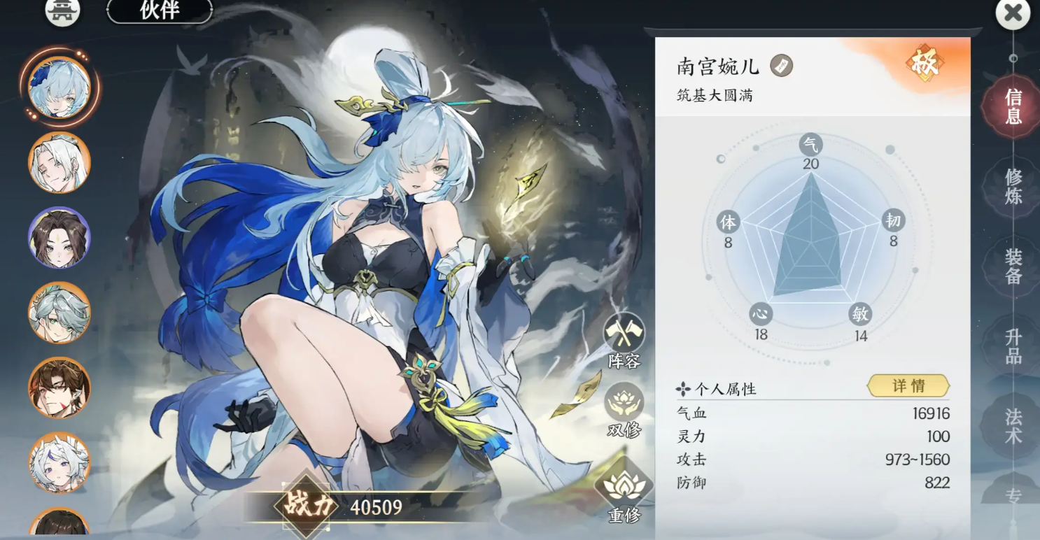 随后玩家需要选择自己的伙伴,T0级别的伙伴有,南宫婉儿和拓跋月,这两个角色都能够帮助玩家,挑战各种不同类型的副本,同时整体的成长难度不高,非常值得新手入手。