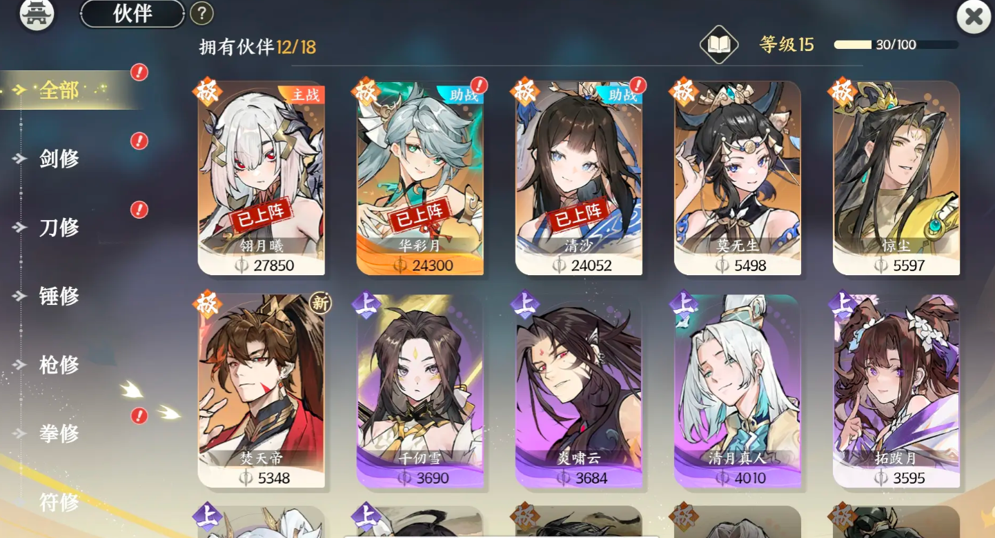 当然,游戏内的伙伴收集玩法,也是最为重要的一个战斗力提升环节,玩家可以通过招募的功能,分别招募剑修、刀修、锤修、枪修、拳修、符修等等角色,随后充盈自己的队列。
