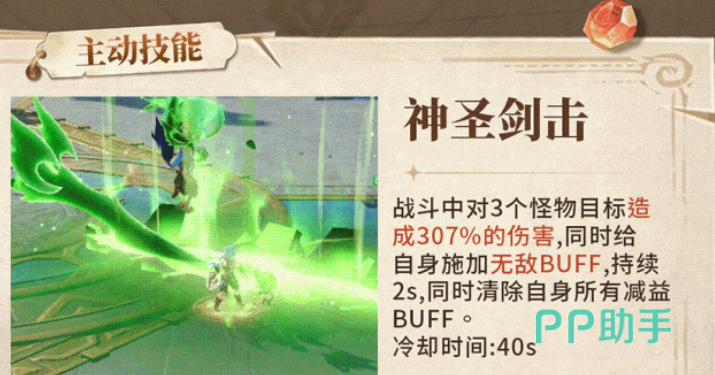 其核心技能“神圣剑击”是决定战局的关键所在。该技能可对三名目标造成高达307%的范围伤害,在群攻类宠物中属于顶级水准,无论是清剿副本杂兵还是收割残血对手都极具效率。释放技能后,角色立即获得2秒无敌状态,期间免疫一切伤害与控制效果,并清除自身负面状态,极大提升了战场容错率。此外,面对玩家单位时伤害提升至1.5倍,这项特性显著增强了其在PVP环境中的竞争力,尤其在跨服对抗或排位赛中表现尤为突出。综合来看,这一技能组合兼具输出、自保与反制能力,实战表现十分亮眼。