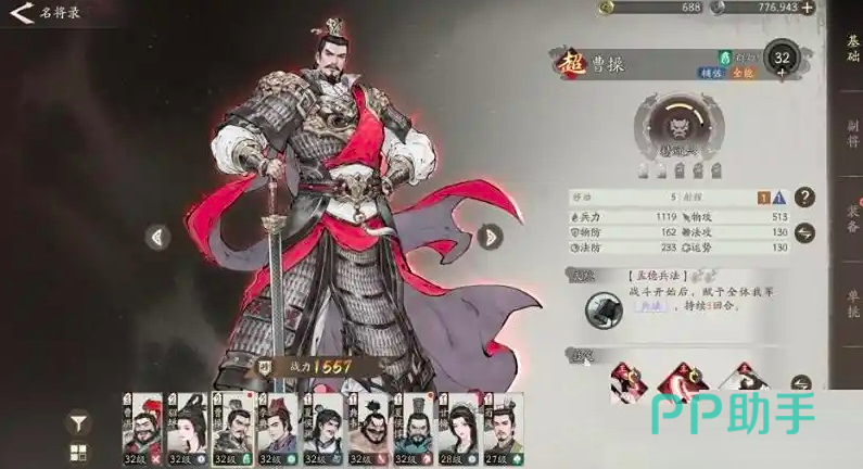 曹操定位为全能辅助型将领,在提供稳定增益的同时也拥有可观的输出能力,能显著提升队伍整体作战效率。其关键技能“孟德兵法”可为全体队友附加持续性增益状态,效果最多延续三回合。此角色在完成初期主线任务后即可轻松获取,养成路径平滑,资源消耗较低,非常适合初入战场的新人玩家作为主力辅助使用。