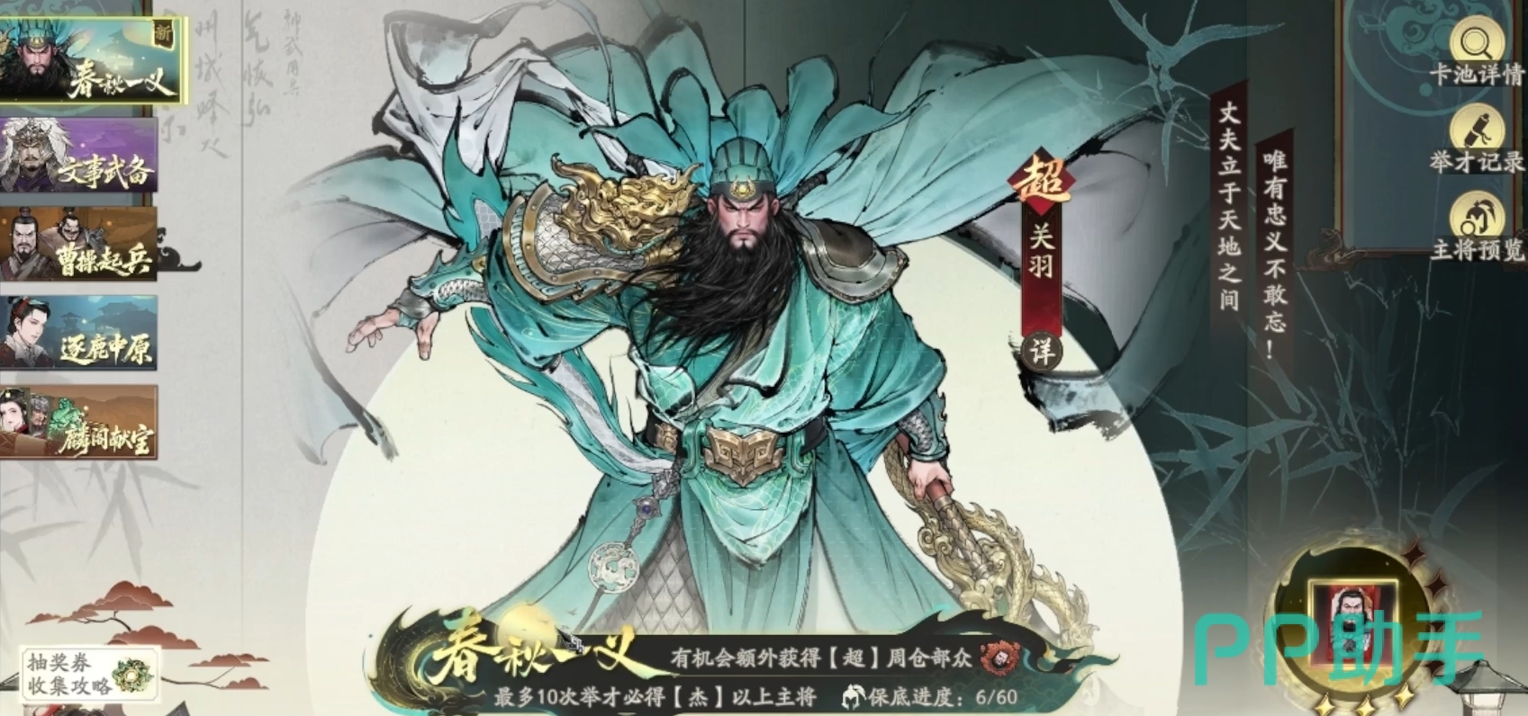 武将常驻池俗称“大卡池”,所有武将出现概率均等,同样具备60抽必出超品的保底设定,但不设最终保底机制。每次抽出的超品均为随机选择,无法指定目标武将,抽取结果高度依赖运气。因此,仅建议在已有主力限定武将、需补充特定搭配角色时才考虑投入常驻池。同时应控制抽取节奏,若连续两次获得的超品均非所需角色,建议及时止损,避免过度消耗资源。