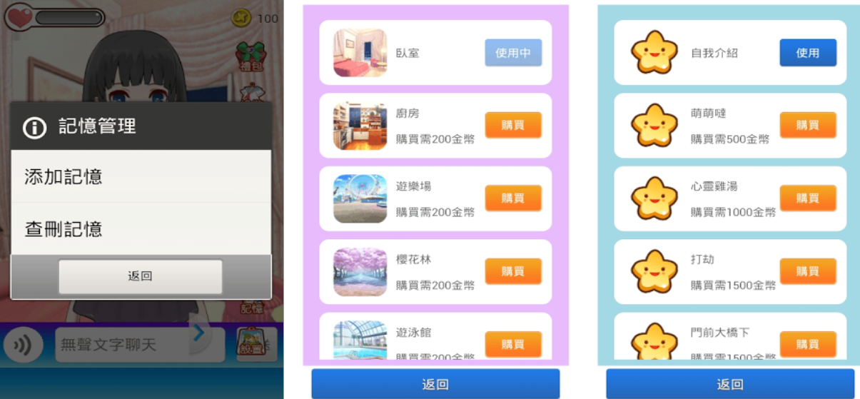 这是款能够自由培养梦想女友的特殊恋爱作品,你可以试着为虚拟女友添加或者消除记忆,个性鲜明的恋爱元素令单身玩家趋之若鹜,可自定义恋爱场景和房间的布局,轻松佛系的恋爱环境塑造也是点睛之笔,女友的颜值跟说话语气都可以自定义,极具代入感的恋爱养成类玩法也是男生最爱,各位单身男生快快自定义专属女友吧。