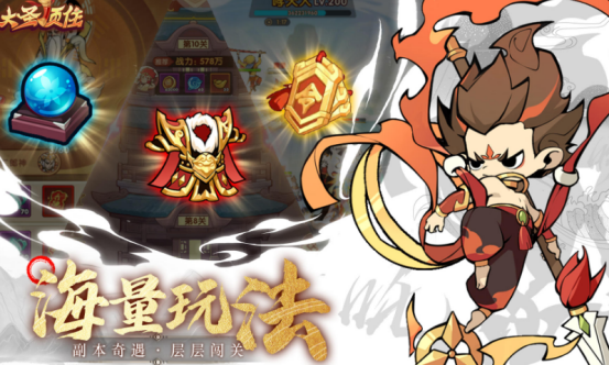 大圣孙悟空是西游ip当中热度极高的角色,以齐天大圣为特色主题的游戏比较丰富这款加入挂机的特色手游玩法相当爽快,有爽快的推图模式,挂机也能变得相当强。挂机的同时可以获得丰富的宝箱奖励,在探索的过程中遇到各种奇遇,不断开宝箱,千变万化尽在你的手中,如果你也非常感兴趣,赶快参与其中,享受无限乐趣吧。