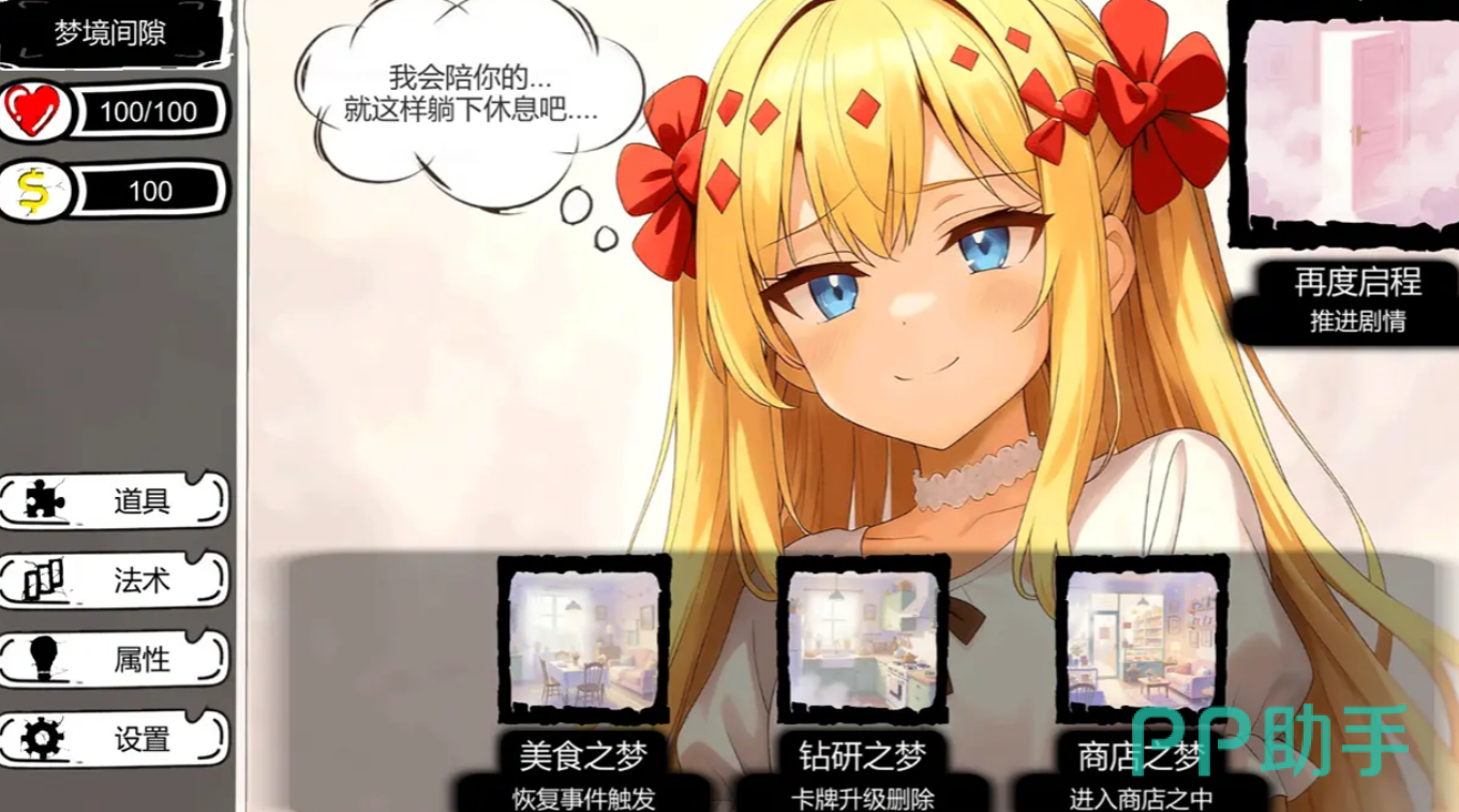 此外,关卡进程中会随机触发特殊事件,如美食事件、钻研之梦、商店之梦等。玩家可根据当前生命值状况及卡牌等级做出最优决策:若需强化卡牌效果,可进入钻研之梦进行升级;而在商店之梦中,则有机会获取新卡组或实用道具补充战力。