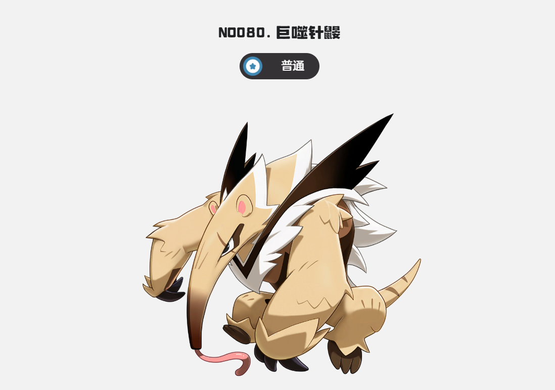 一旦获得贪食鼹,建议玩家充分利用其特性,尤其是在搭配其他虫系精灵组队时,技能协同效果更为明显,输出能力也会随之增强。当贪食鼹再次成长至32级后,若能在战斗中战胜一只虫系精灵,便可进一步进化为巨噬针鼹。这一阶段的形态变化极为显著:体表覆盖坚硬鬃毛,犹如天然护甲,大幅提升了防御能力;同时舌头变得更加灵敏,不仅能快速捕捉猎物,还可缠绕敌人限制行动。