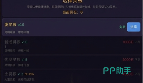 角色创建阶段,灵根选择是影响长期成长路径的关键决策。系统明确标注各类型灵根对应的初始修炼速度加成系数:废灵根为0.5倍,普通灵根为1.0倍,优良灵根为1.2倍。虽废灵根起步较慢,但其设计深度绑定游戏核心机制——轮回转世系统。每次转世后,废灵根资质将获得叠加式强化,越后期优势越显著。因此,推荐新玩家首选废灵根,契合“前期蛰伏、后期称尊”的叙事逻辑与数值成长曲线。