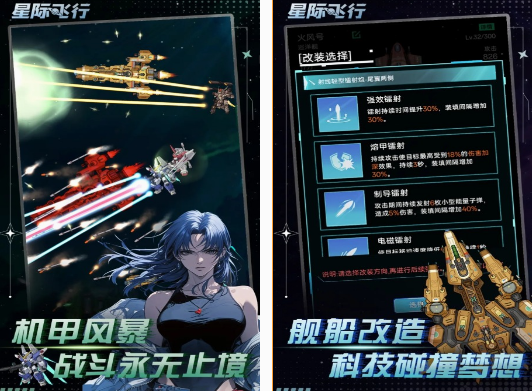 这款游戏中的玩家,将会置身于大家熟悉的星际宇宙世界,既可展开机甲风暴,通过战斗的方式,享受紧张刺激感,还能走进精英小队。在星际战场当中,凭借实力来征服其他的队伍。支持对舰船进行改造发挥科技与梦想之间的碰撞,在改造时也支持多样的选择。无论你是想要在星际的世界当中完成飞行,或者是加入战斗模式,都能感受独特的游戏环境。