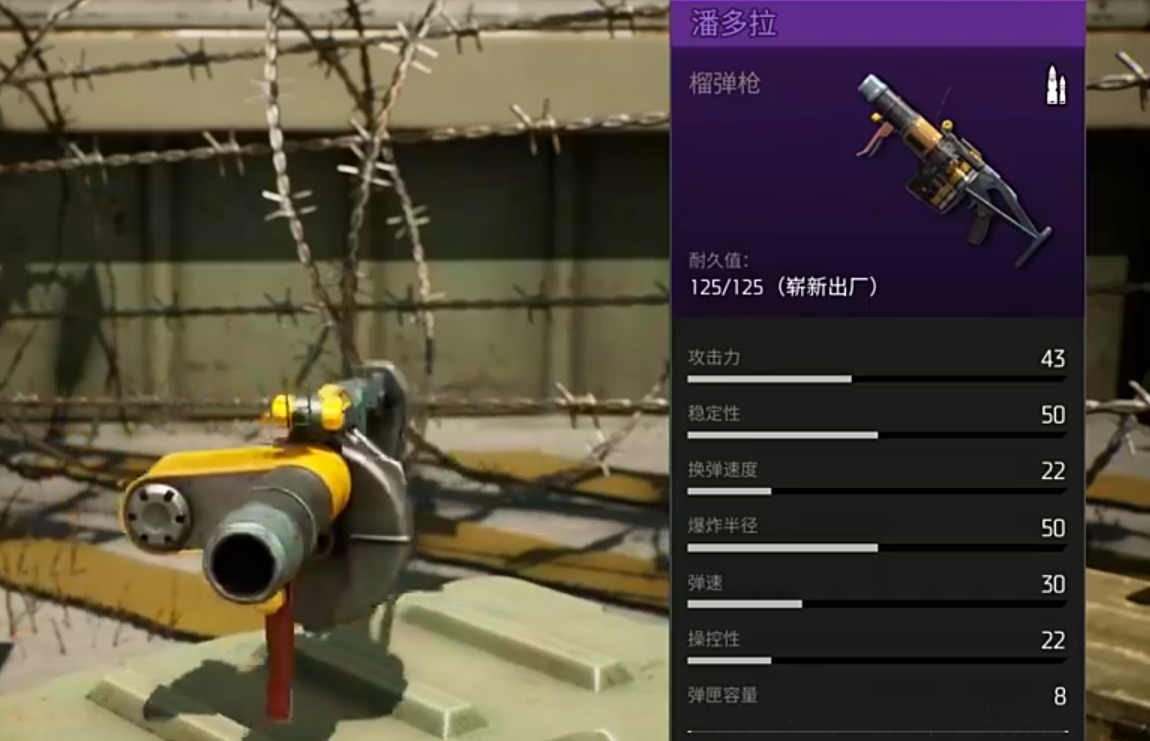 潘多拉的属性为:攻击力43、稳定性50、换弹速度22、爆炸半径50、弹速30、操控性22、弹匣容量8。相比前者,潘多拉更侧重于持续输出能力,具备更高的弹药储备和稳定的火力延续性,适合进行多轮连续轰炸。