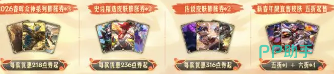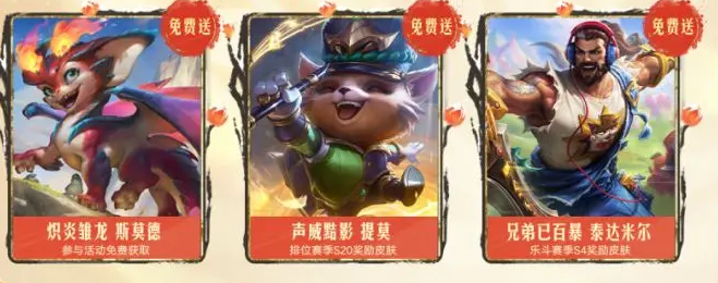 第二波核心福利为S20排位赛季纪念皮肤,授予英雄提莫,采用春日主题配色与动态花瓣特效,属本次活动唯一免费直领的排位系列皮肤。同步开放商城通用折扣券,覆盖全量皮肤品类,包括史诗级、传说级、新年限定及春晖系列等多档位商品。