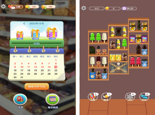 如果你对于整理冰箱或者是超市购物,很感兴趣,这款以消除为主的游戏,它的玩法非常简单,你需要将物品拖到货架上,然后进行配对,就可过关。涵盖1000多个关卡内容,同时也有生活中比较常见的食物,包括零食薯条等,通过对这些食物进行分类的方式,帮助你了解这款三重匹配游戏,所带来的独特玩法,也有机会获得超多道具。