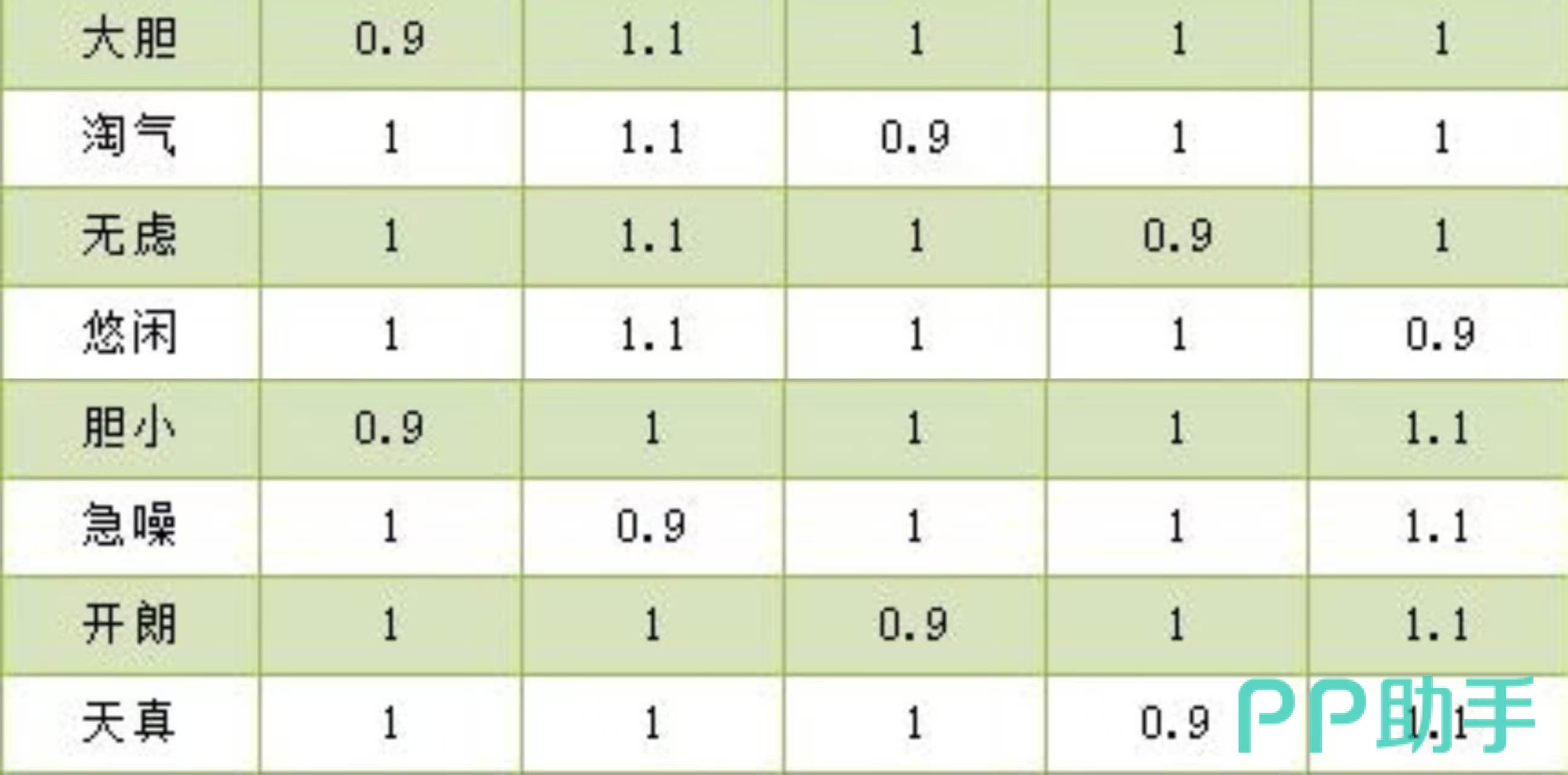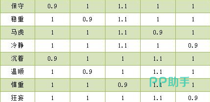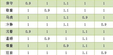 第二类为防御向性格:大胆、悠闲、淘气、无虑。全部提供物理防御+10%加成,牺牲属性分别为物理攻击、速度、魔法攻击、魔法抗性。适合坦克型精灵如钢甲暴龙、玄武岩龟等,其中悠闲(防+10%/速−10%)常用于耐久控场队,而大胆(防+10%/攻−10%)更适配反伤或护盾流体系。