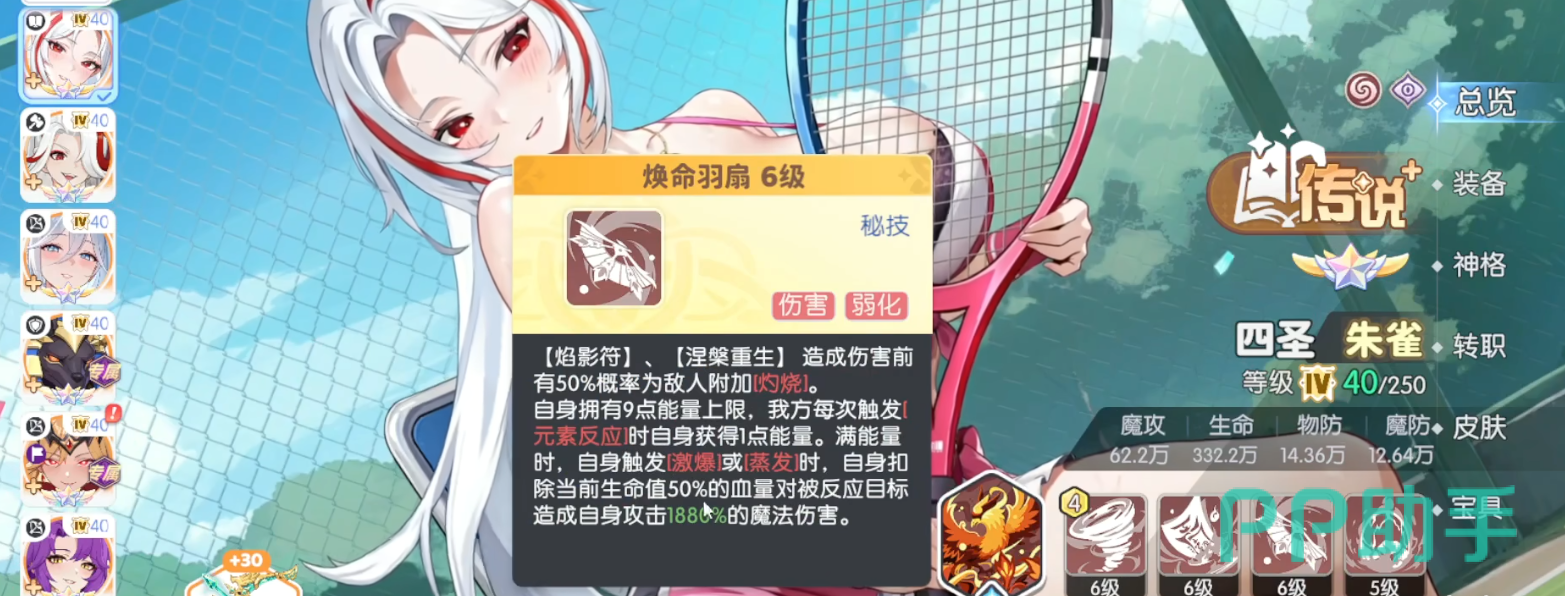 朱雀的基础职业定位为远程法系输出,技能伤害全部基于攻击力数值计算,且所有主动技能均受益于形态切换带来的增益叠加效果。在转职分支中,符文法师是当前版本唯一具备完整强度闭环的选择——该职业不仅强化了技能倍率与能量回复效率,更解锁了关键被动“星火共鸣”,使她在持续作战中可稳定维持双形态高频轮换,从而最大化DPS循环节奏。其余转职路线在伤害阈值、生存容错或技能覆盖率方面均存在明显短板,不建议投入核心资源。