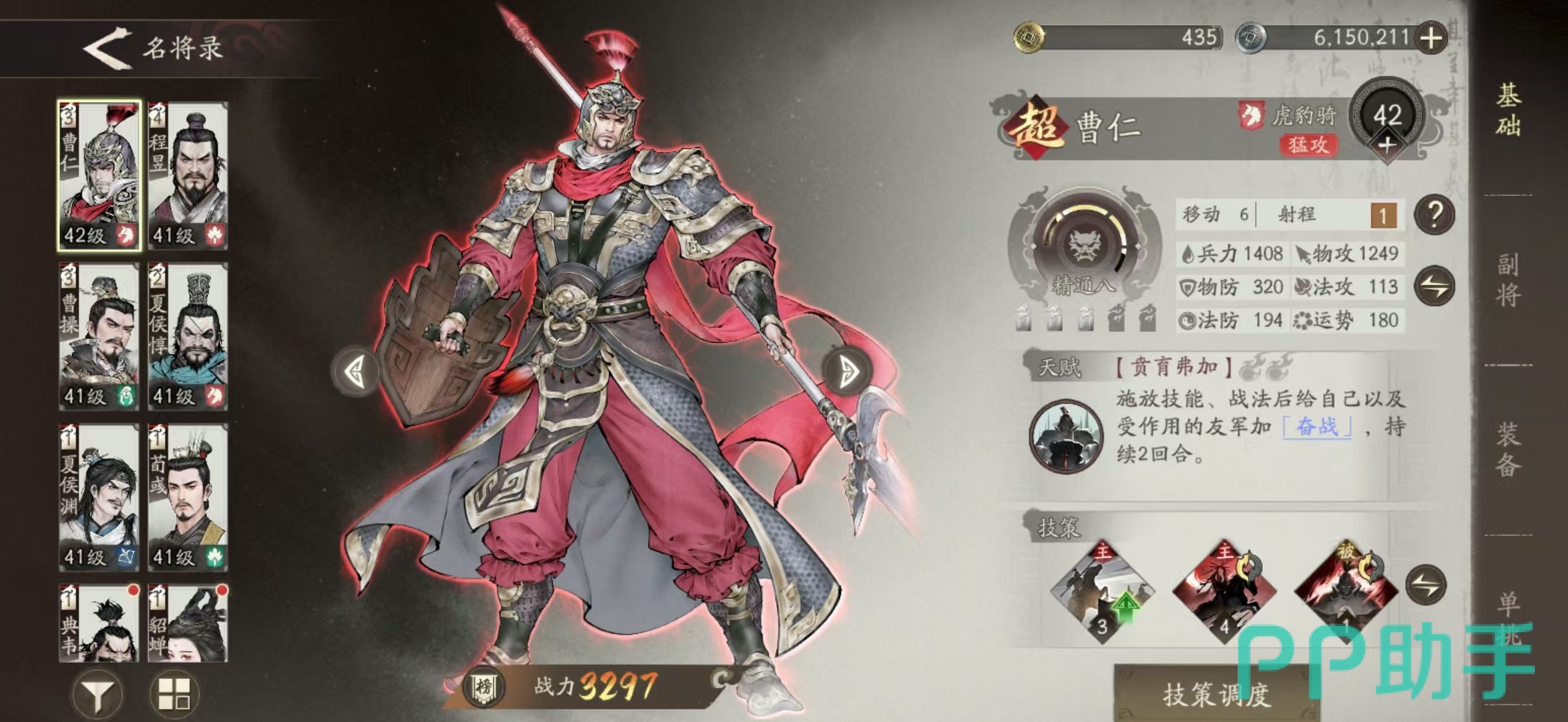 第四位是曹操,当前版本剧本中不可或缺的关键辅助。他是全游戏中唯一具备光环类技能的武将,能够大幅提升范围内队友的技能与战法伤害。无论是短歌行、魏武挥鞭还是天下归心,均能为团队提供强力增益,适用于多种阵容配置。无论是否投入资源,曹操都是必练角色。此外,徐晃与荀彧也可通过签到等免费活动获得。荀彧可强化队友普通攻击的输出能力,徐晃则是稳定的物理输出点,两者养成成本低,实战表现优秀,非常适合平民玩家纳入主力阵容。